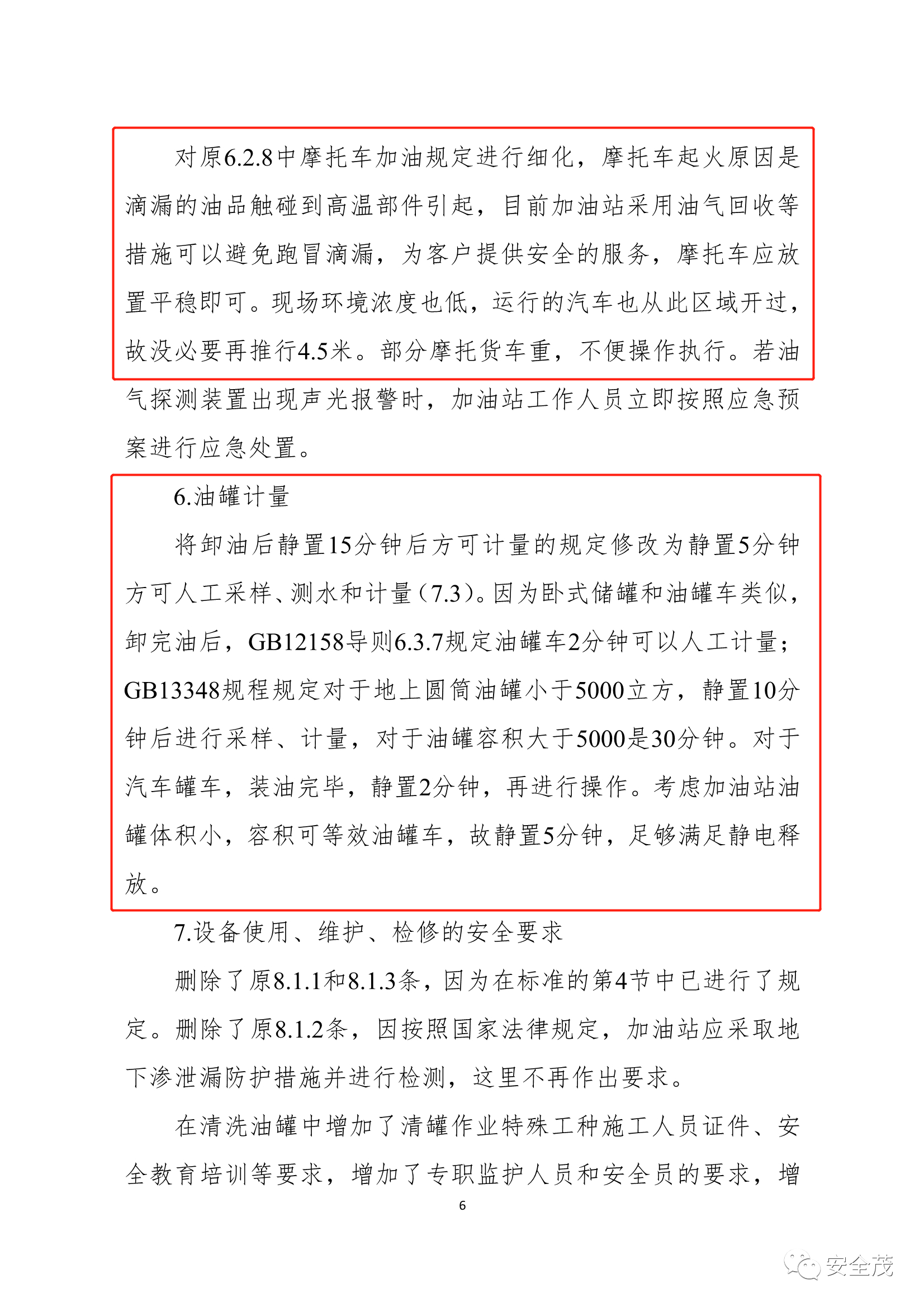 6、刪除了“卸油前,停止與該罐連接的給油設(shè)備”要求,加油站安裝防水濾芯的在保證油品質(zhì)量風(fēng)險可控的情況下可同時加油。