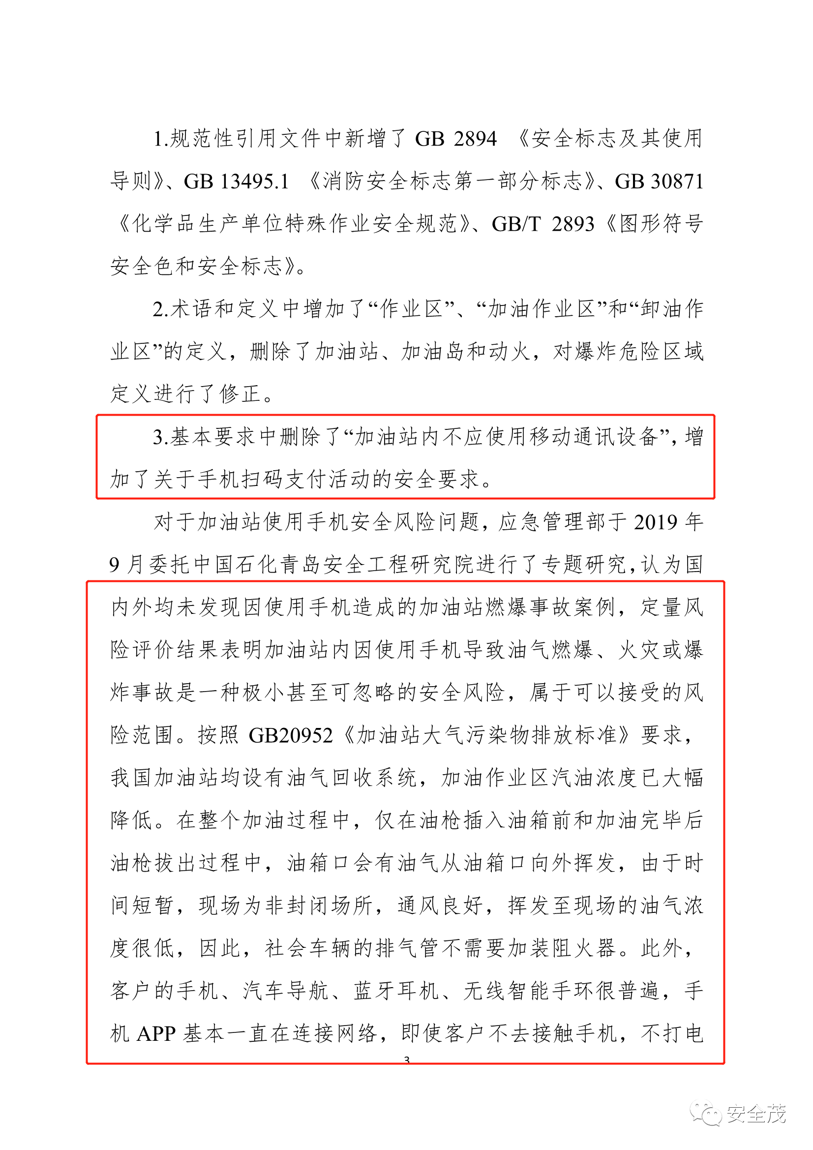 1、刪除了“加油站內(nèi)不應(yīng)使用移動通訊設(shè)備”的要求。
