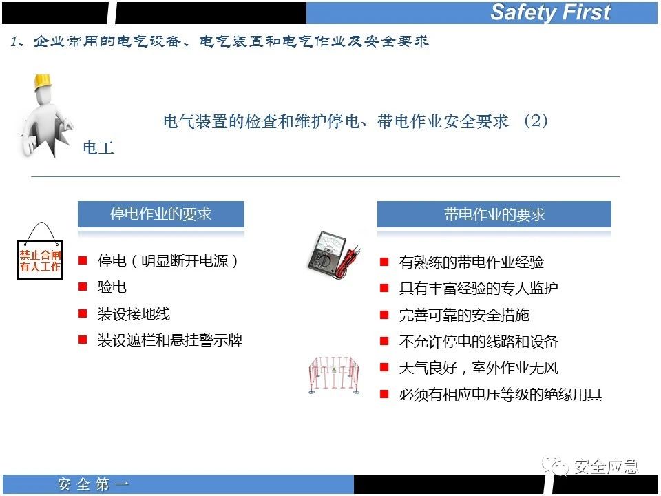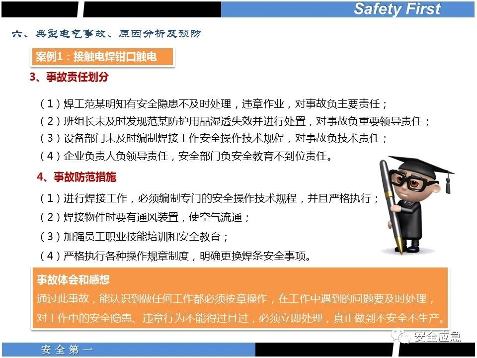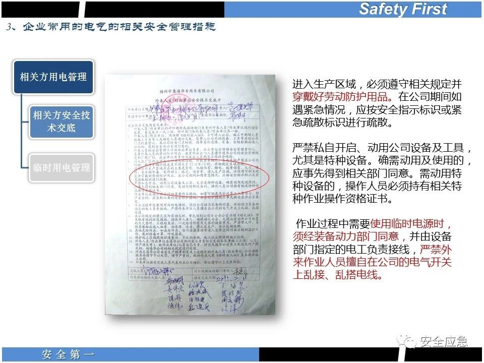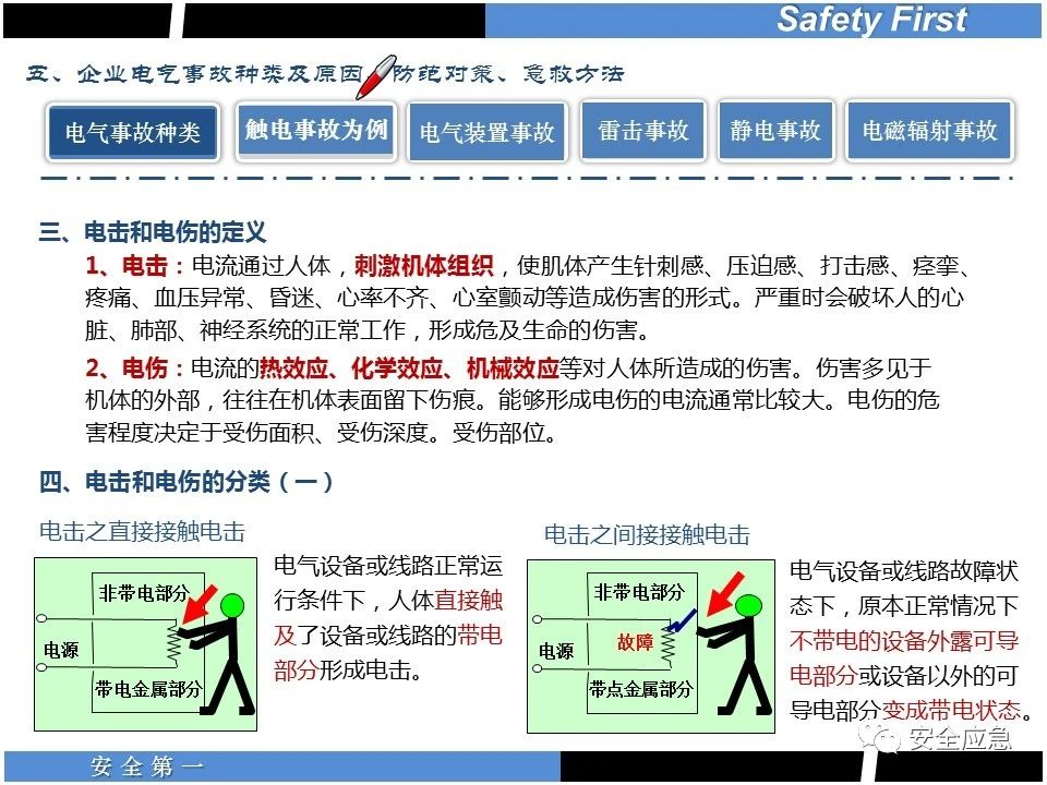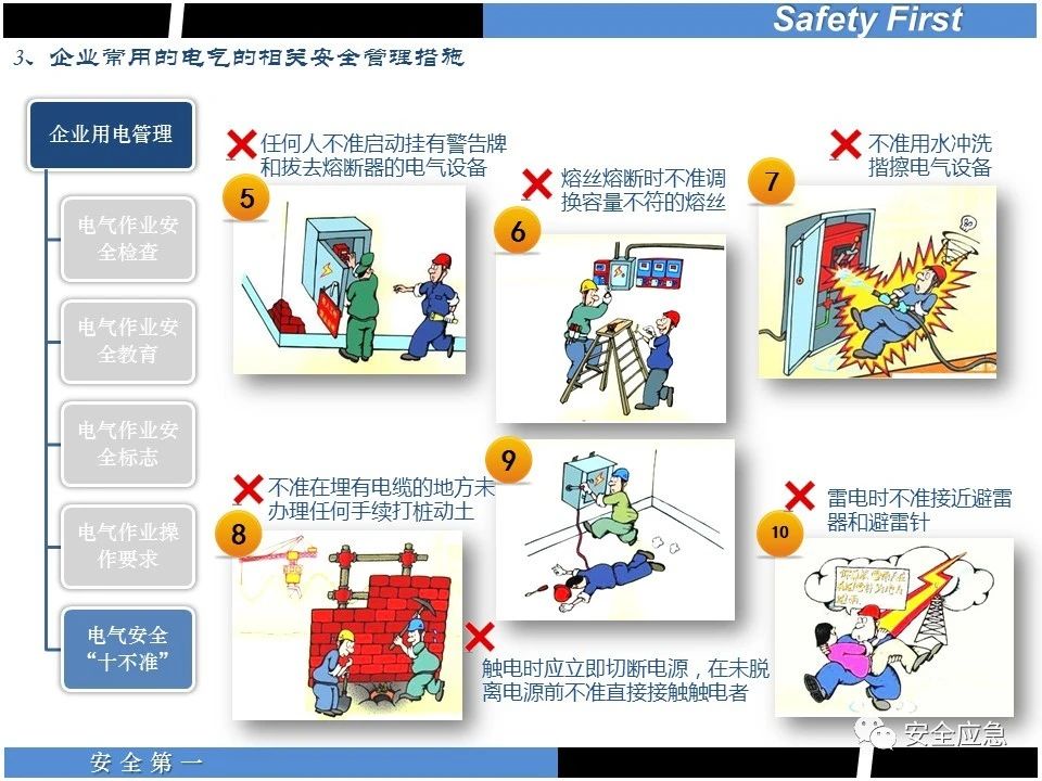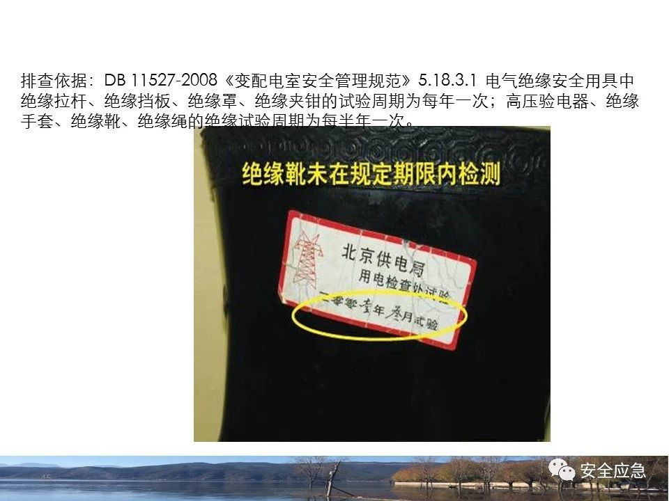 案例73 事故案例73:某35變電站準(zhǔn)備10kV避雷器試驗(yàn)。作業(yè)人員會(huì)同運(yùn)行人員準(zhǔn)備查看設(shè)備實(shí)際情況,拆卸10kV開關(guān)柜背板螺栓,打開了柜門上的電磁鎖,并打開了后柜門后,作業(yè)人員探頭進(jìn)入開關(guān)柜內(nèi)時(shí),對(duì)開關(guān)柜放電。 其它案例見17、18、19、20、21、22、23、50、52。 (27)多組人員組織混亂 案例74 事故案例74:某單位開展500kV線路停電檢修和地線融冰試驗(yàn)。1名工作人員不聽他人勸阻,登塔拆除引流線。隨后開展地線融冰試驗(yàn),該工作人員觸電死亡。 其它案例見45、46、47、48。 (28)交底不認(rèn)真 案例75 事故案例75:某工作負(fù)責(zé)人帶領(lǐng)兩名工作人員準(zhǔn)備在10kV線路裝設(shè)接地線。工作前,工作負(fù)責(zé)人沒有進(jìn)行班前(后)會(huì),沒有分配工作任務(wù),也沒有交代安全注意事項(xiàng),另外兩人也沒有主動(dòng)詢問,相互提醒,導(dǎo)致工作負(fù)責(zé)人無監(jiān)護(hù)誤登運(yùn)行線路,造成觸電。 其它案例見32。 (29)監(jiān)護(hù)不到位 l 單人工作無監(jiān)護(hù) 事故案例:36。 l 監(jiān)護(hù)人參與工作 事故案例:11。 l 監(jiān)護(hù)不認(rèn)真,或默許違章行為 事故案例:67。 (30)人員、工作安排不恰當(dāng) 案例76 事故案例76:某供電所安排不具備單獨(dú)工作資格和能力的新入廠員工上桿進(jìn)行配變?cè)O(shè)備搶修工作,由于安全距離不夠,員工經(jīng)驗(yàn)不足,監(jiān)護(hù)不到位,導(dǎo)致觸電。 案例77 事故案例77:某高壓試驗(yàn)班開展定檢預(yù)試作業(yè)。工作負(fù)責(zé)人與工作人員在抄錄放電計(jì)數(shù)器銘牌,另一名剛參加工作不久的工作人員拿著自制試驗(yàn)線插入移動(dòng)電源盤插座內(nèi),然后,用左、右手分別拿住兩個(gè)鱷魚夾準(zhǔn)備對(duì)放電器搭接做試驗(yàn),左、右手習(xí)慣性的分別握住了兩個(gè)鱷魚夾的導(dǎo)體部分,此時(shí)電流通過人體,漏電保護(hù)器沒有動(dòng)作,觸電死亡。 (31)單人作業(yè) l 野外單人巡線、勘察 案例78 事故案例78:某單位開展線路巡視時(shí),單人作業(yè),在被告知“巡視完N58塔后切勿過江,要沿原路返回”的情況下,仍然獨(dú)自一人違規(guī)游泳過江,溺水身亡。 案例79 事故案例79:某單位野外勘察時(shí),某工作人員在未告知工作負(fù)責(zé)人的情況下,獨(dú)自一人返回車輛所在地,途中墜落懸崖暈倒,受輕傷并失蹤12小時(shí)。 附件:最全面的電氣安全培訓(xùn),實(shí)用!