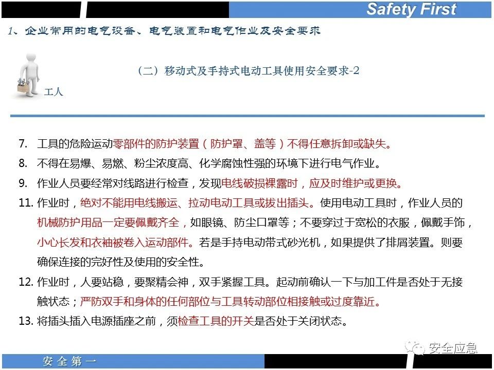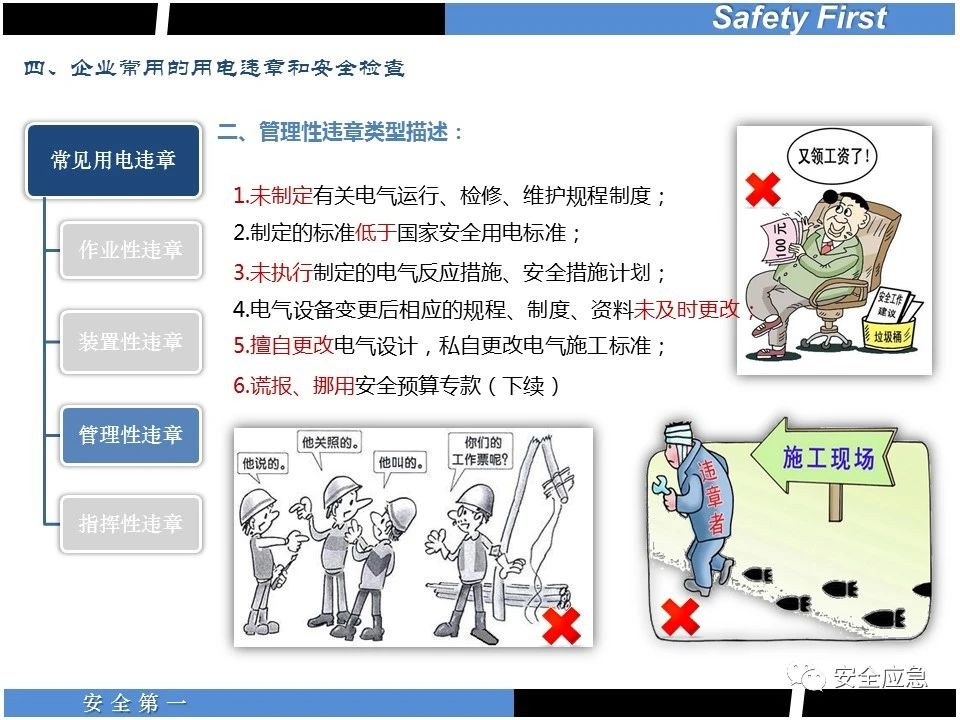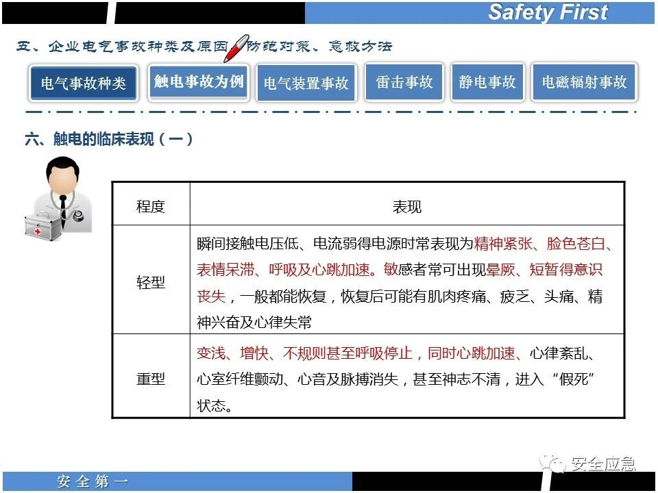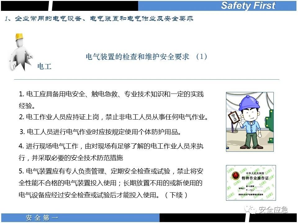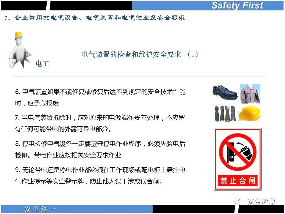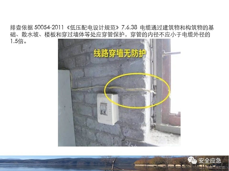 案例73 事故案例73:某35變電站準(zhǔn)備10kV避雷器試驗(yàn)。作業(yè)人員會(huì)同運(yùn)行人員準(zhǔn)備查看設(shè)備實(shí)際情況,拆卸10kV開關(guān)柜背板螺栓,打開了柜門上的電磁鎖,并打開了后柜門后,作業(yè)人員探頭進(jìn)入開關(guān)柜內(nèi)時(shí),對(duì)開關(guān)柜放電。 其它案例見17、18、19、20、21、22、23、50、52。 (27)多組人員組織混亂 案例74 事故案例74:某單位開展500kV線路停電檢修和地線融冰試驗(yàn)。1名工作人員不聽他人勸阻,登塔拆除引流線。隨后開展地線融冰試驗(yàn),該工作人員觸電死亡。 其它案例見45、46、47、48。 (28)交底不認(rèn)真 案例75 事故案例75:某工作負(fù)責(zé)人帶領(lǐng)兩名工作人員準(zhǔn)備在10kV線路裝設(shè)接地線。工作前,工作負(fù)責(zé)人沒有進(jìn)行班前(后)會(huì),沒有分配工作任務(wù),也沒有交代安全注意事項(xiàng),另外兩人也沒有主動(dòng)詢問,相互提醒,導(dǎo)致工作負(fù)責(zé)人無監(jiān)護(hù)誤登運(yùn)行線路,造成觸電。 其它案例見32。 (29)監(jiān)護(hù)不到位 l 單人工作無監(jiān)護(hù) 事故案例:36。 l 監(jiān)護(hù)人參與工作 事故案例:11。 l 監(jiān)護(hù)不認(rèn)真,或默許違章行為 事故案例:67。 (30)人員、工作安排不恰當(dāng) 案例76 事故案例76:某供電所安排不具備單獨(dú)工作資格和能力的新入廠員工上桿進(jìn)行配變?cè)O(shè)備搶修工作,由于安全距離不夠,員工經(jīng)驗(yàn)不足,監(jiān)護(hù)不到位,導(dǎo)致觸電。 案例77 事故案例77:某高壓試驗(yàn)班開展定檢預(yù)試作業(yè)。工作負(fù)責(zé)人與工作人員在抄錄放電計(jì)數(shù)器銘牌,另一名剛參加工作不久的工作人員拿著自制試驗(yàn)線插入移動(dòng)電源盤插座內(nèi),然后,用左、右手分別拿住兩個(gè)鱷魚夾準(zhǔn)備對(duì)放電器搭接做試驗(yàn),左、右手習(xí)慣性的分別握住了兩個(gè)鱷魚夾的導(dǎo)體部分,此時(shí)電流通過人體,漏電保護(hù)器沒有動(dòng)作,觸電死亡。 (31)單人作業(yè) l 野外單人巡線、勘察 案例78 事故案例78:某單位開展線路巡視時(shí),單人作業(yè),在被告知“巡視完N58塔后切勿過江,要沿原路返回”的情況下,仍然獨(dú)自一人違規(guī)游泳過江,溺水身亡。 案例79 事故案例79:某單位野外勘察時(shí),某工作人員在未告知工作負(fù)責(zé)人的情況下,獨(dú)自一人返回車輛所在地,途中墜落懸崖暈倒,受輕傷并失蹤12小時(shí)。 附件:最全面的電氣安全培訓(xùn),實(shí)用!