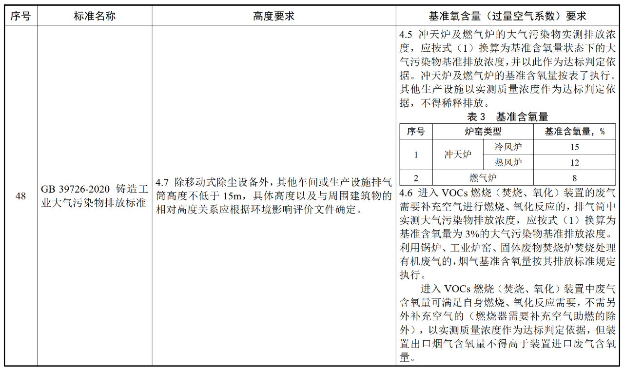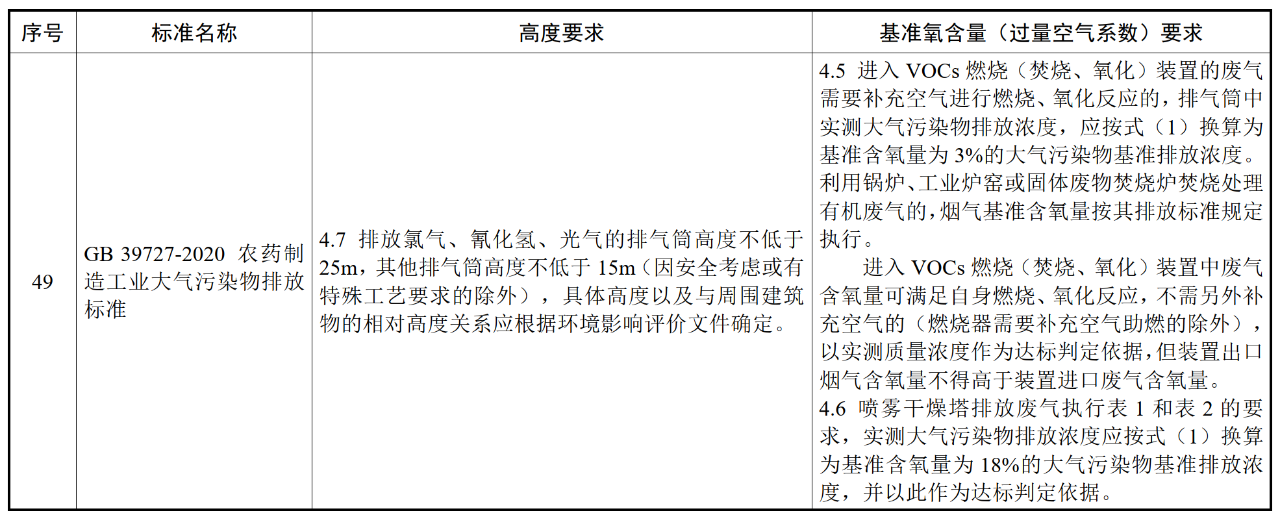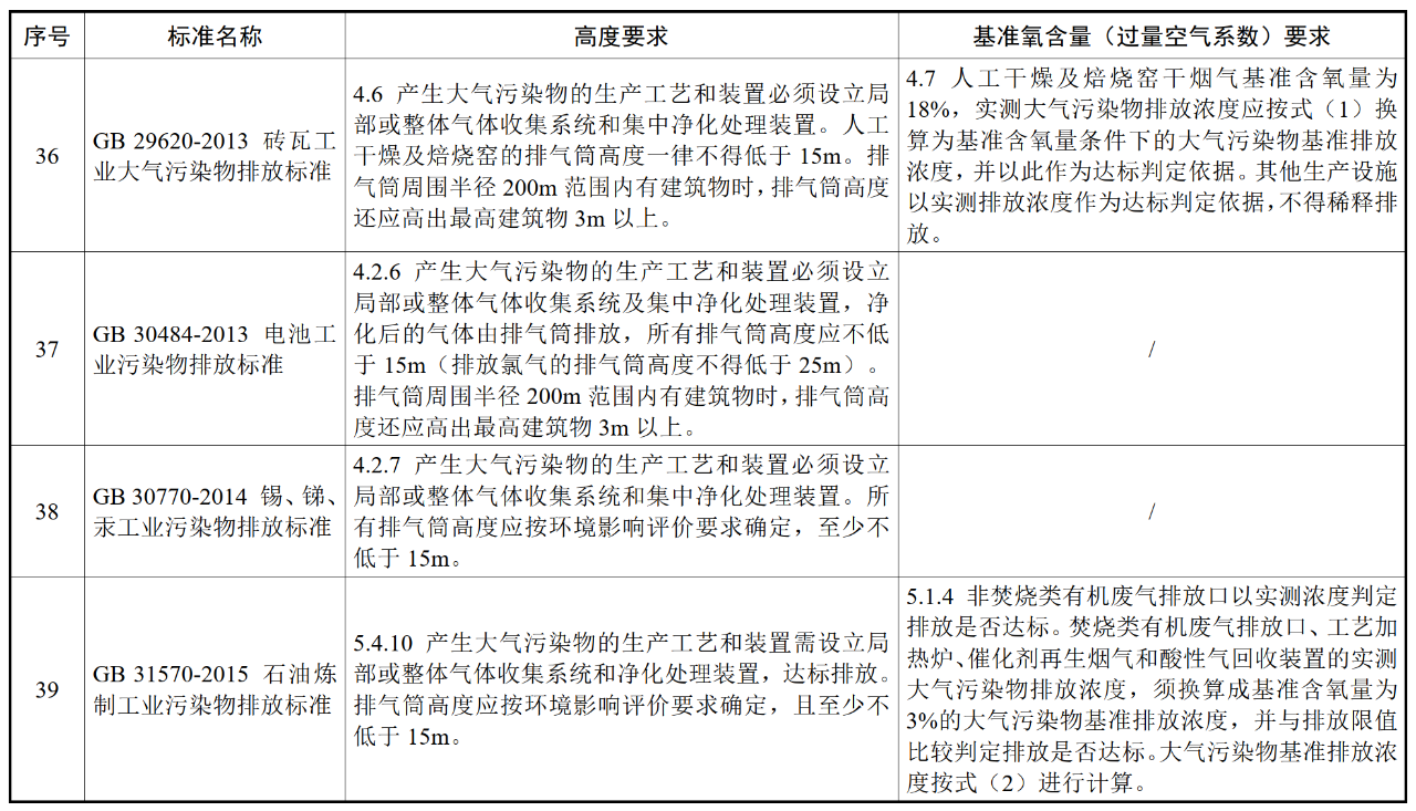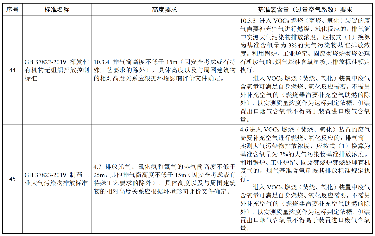 各行業(yè)大氣污染物(含VOCs)排氣筒高度及基準(zhǔn)氧含量要求