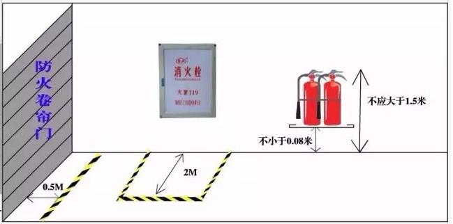 防火卷簾門兩側(cè)各0.5m范圍內(nèi)不得堆放物品,并應(yīng)用黃色標(biāo)識(shí)線劃定范圍?!度藛T密集場所消防安全管理》(GA654-2006)8.3.7