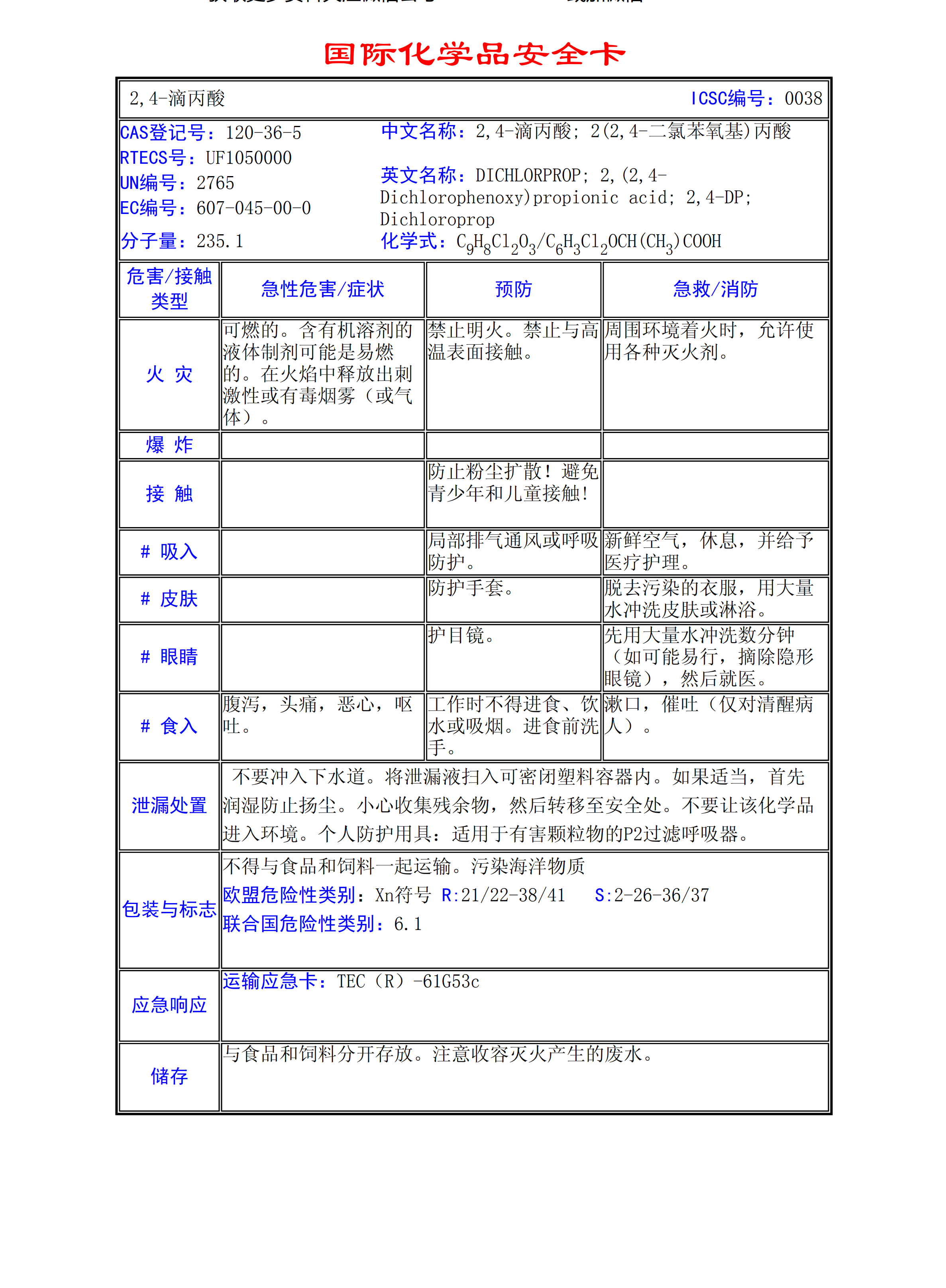 2,4-滴丙酸MSDS