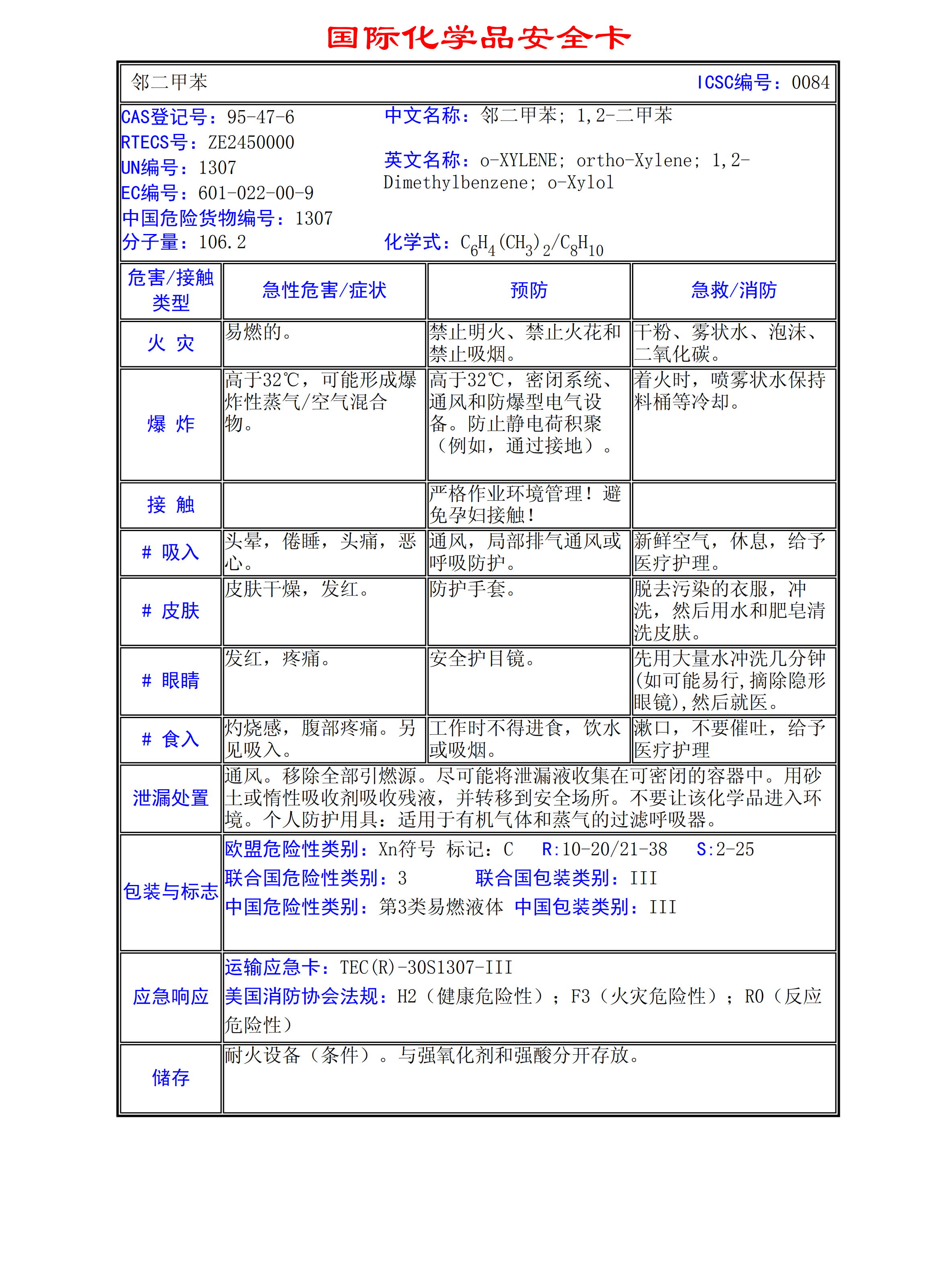 鄰二甲苯MSDS