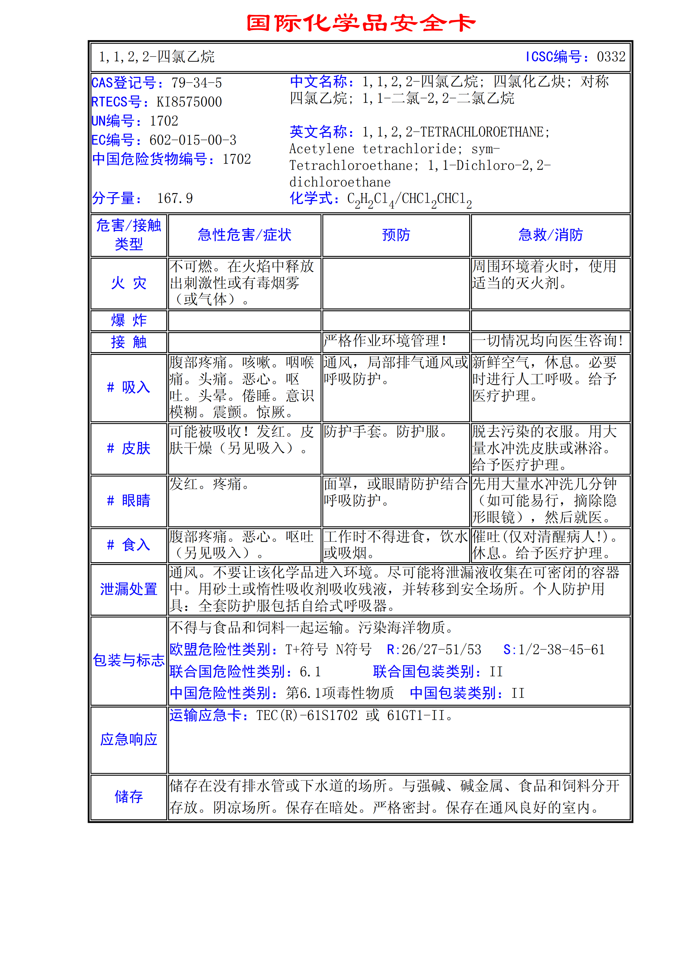 1,1,2,2-四氯乙烷MSDS