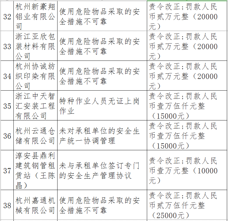 近日,杭州市應(yīng)急管理局對(duì)50多家被行政處罰的企業(yè)(個(gè)人)進(jìn)行曝光