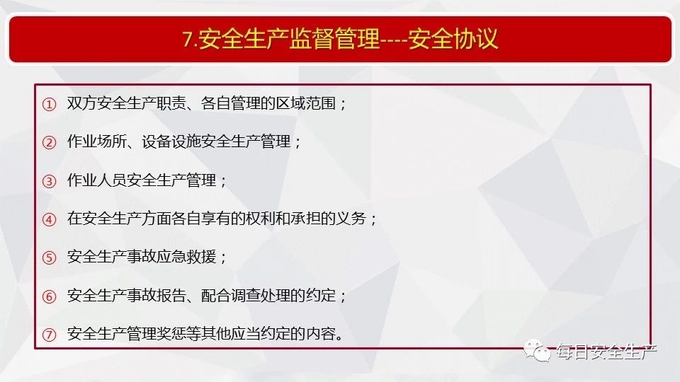 27 | 生產(chǎn)經(jīng)營(yíng)單位未與承包單位、承租單位簽訂專門的安全生產(chǎn)管理協(xié)議或者未在承包合同、租賃合同中明確各自的安全生產(chǎn)管理職責(zé),或者未對(duì)承包單位、承租單位的安全生產(chǎn)統(tǒng)一協(xié)調(diào)、管理的 |