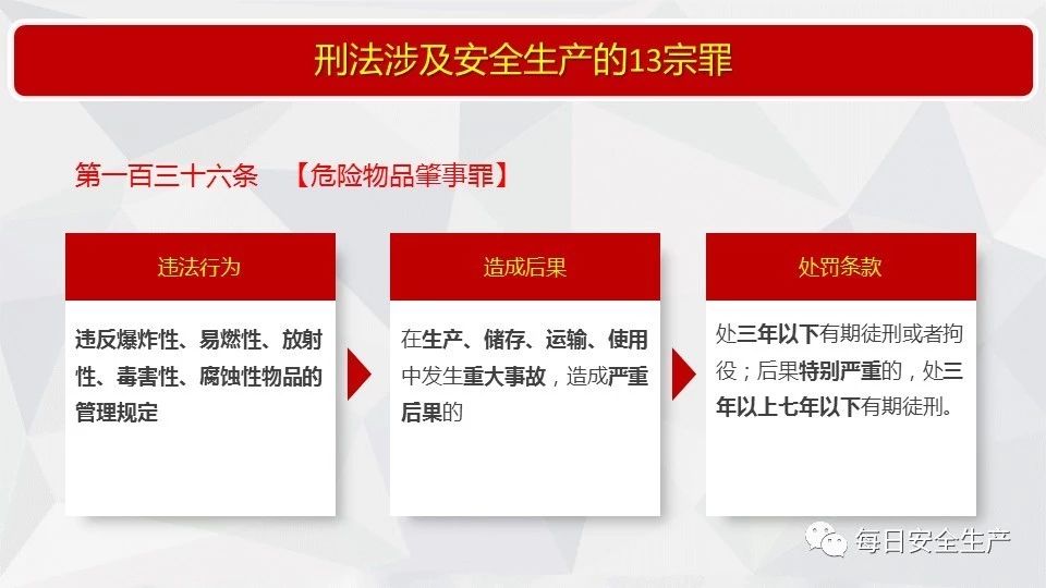 21 | 生產(chǎn)、經(jīng)營(yíng)、運(yùn)輸、儲(chǔ)存、使用危險(xiǎn)物品或者處置廢棄危險(xiǎn)物品,未建立專門安全管理制度、未采取可靠的安全措施的 |