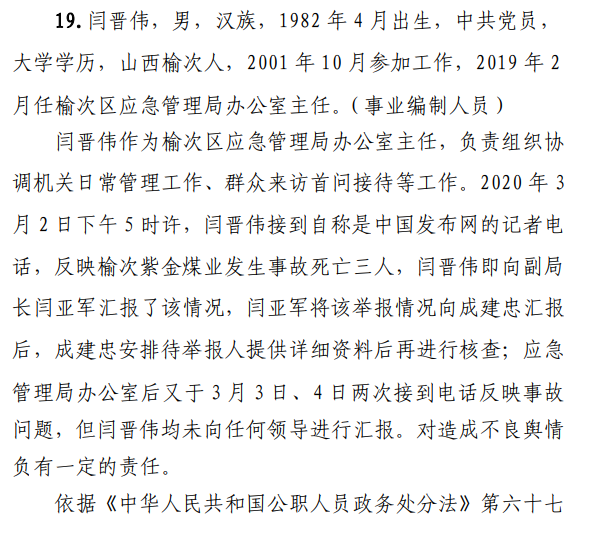 近日,山西煤礦安全監(jiān)察網(wǎng)發(fā)布該起事故調(diào)查報(bào)告顯示:事故發(fā)生后,礦方蓄意瞞報(bào)。后經(jīng)媒體披露,晉中市榆次區(qū)人民政府組織核查,于3月8日查實(shí)本起事故。