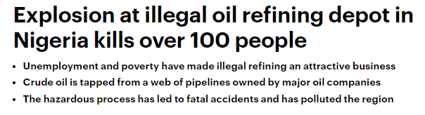 據(jù)外媒最新報(bào)道,這個慘劇就發(fā)生在4月22日晚上,非洲最大的原油生產(chǎn)國尼日利亞,位于伊莫州(Imo)的一家非法煉油廠,這里是尼日利亞三角洲地帶,靠近森林地帶。