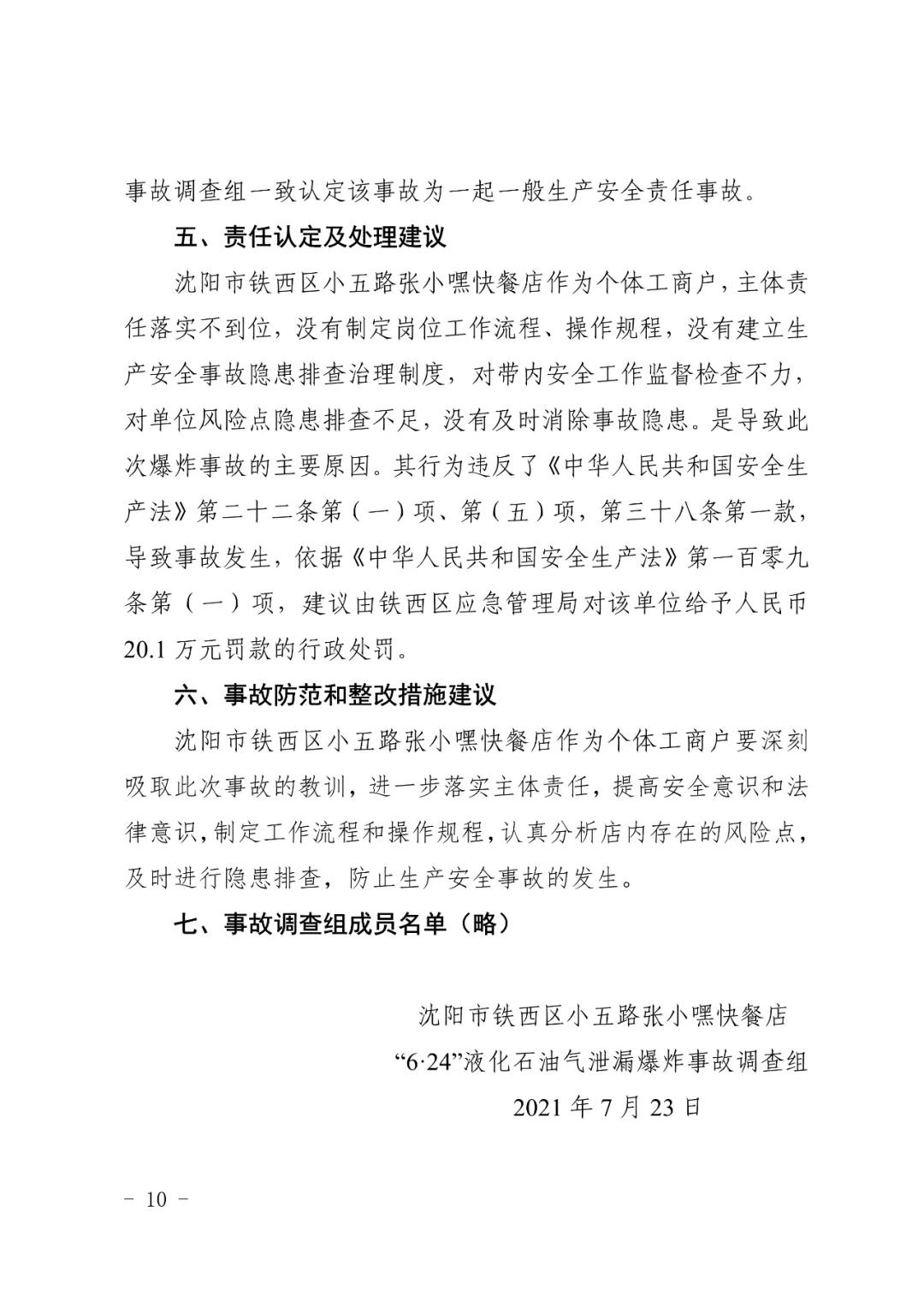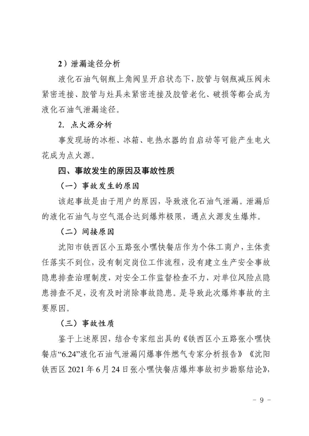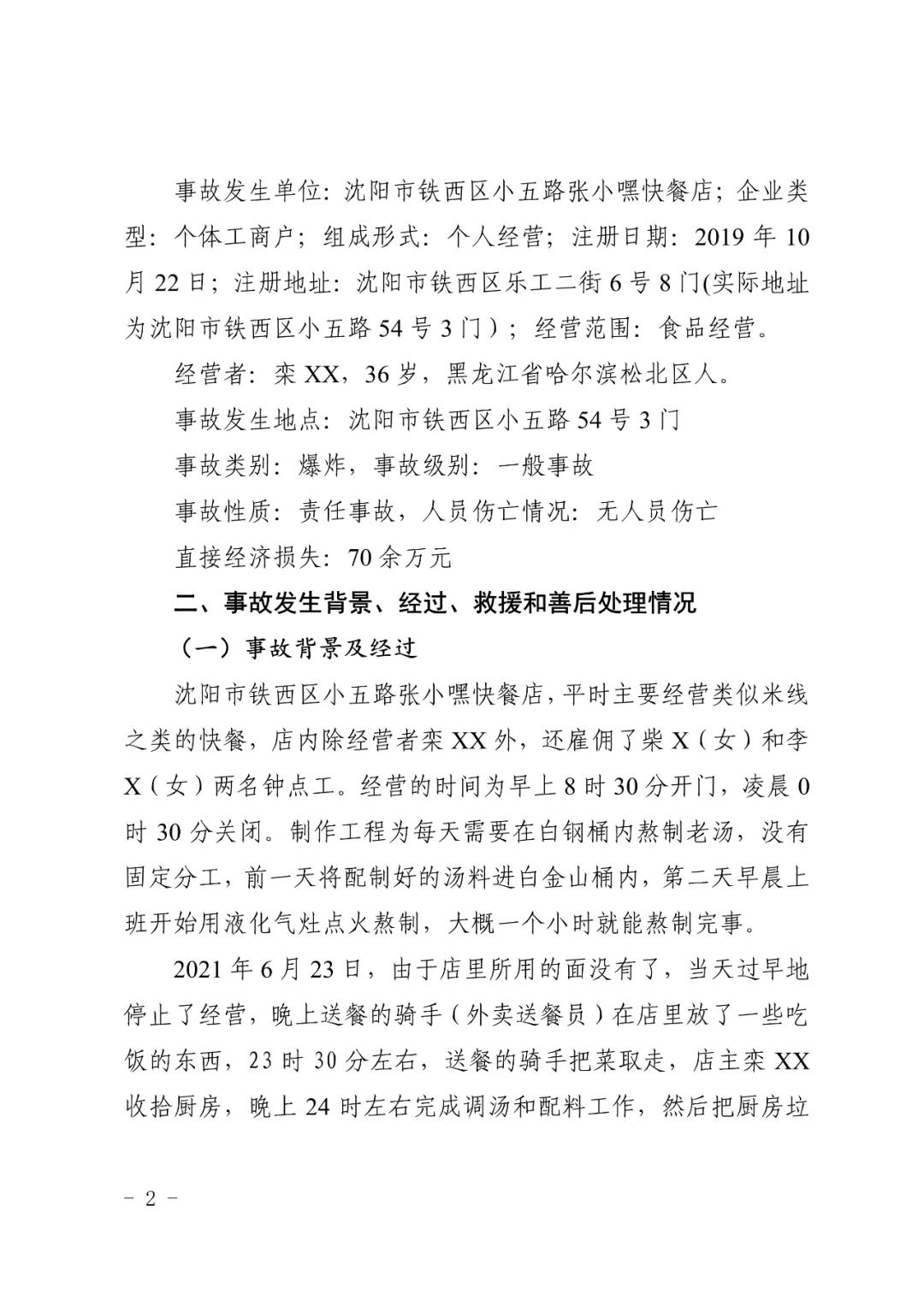 2021 年 6 月 24 日 4 時(shí) 11 分左右,位于沈陽市鐵西區(qū)小五路 54 號(hào) 3 門,沈陽市鐵西區(qū)小五路張小嘿快餐店內(nèi)發(fā)生液化石油氣泄漏爆炸,無人員傷亡,直接經(jīng)濟(jì)損失 70 余萬元。