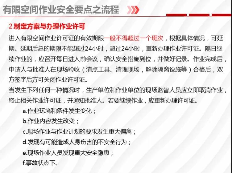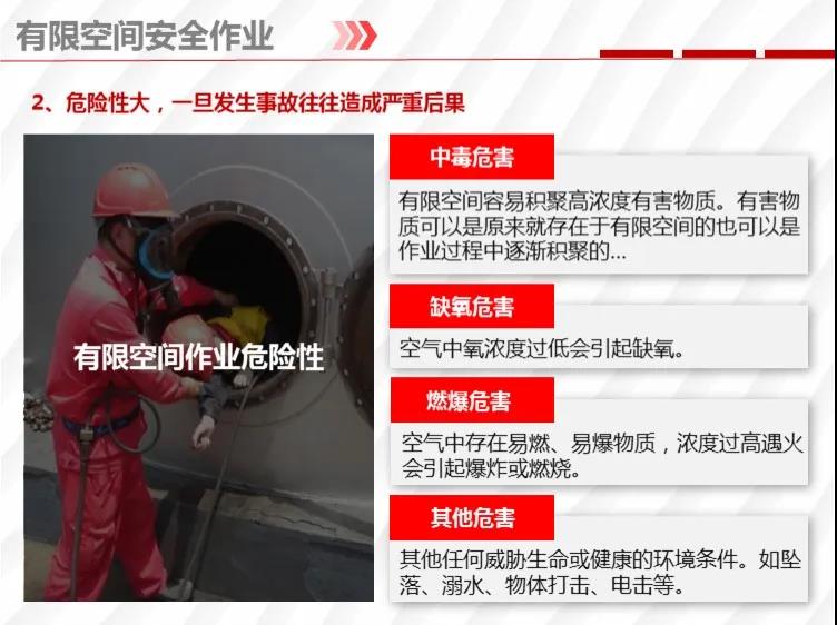 一要立即開(kāi)展有限空間安全風(fēng)險(xiǎn)排查。春節(jié)假期剛過(guò),各類(lèi)企業(yè)集中復(fù)工復(fù)產(chǎn),涉及有限空間作業(yè)安全的檢維修、調(diào)試行為增多,加之氣溫逐漸升高,造成有限空間中有毒有害氣體集聚,安全風(fēng)險(xiǎn)加劇。各地各有關(guān)部門(mén)要督促涉及有限空間作業(yè)的工礦商貿(mào)企業(yè)以及市政工程、垃圾發(fā)電、燃?xì)狻崃?、排水、衛(wèi)生、環(huán)保等重點(diǎn)單位、重點(diǎn)區(qū)域、重點(diǎn)場(chǎng)所開(kāi)展全方位的風(fēng)險(xiǎn)隱患排查。對(duì)發(fā)現(xiàn)的風(fēng)險(xiǎn)隱患,企業(yè)要逐一登記造冊(cè),向負(fù)有安全監(jiān)管職責(zé)的部門(mén)報(bào)告,并按照《有限空間作業(yè)安全指導(dǎo)手冊(cè)》(應(yīng)急廳函〔2020〕299號(hào))要求落實(shí)各項(xiàng)防范措施。