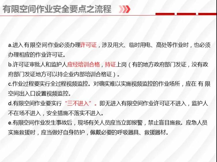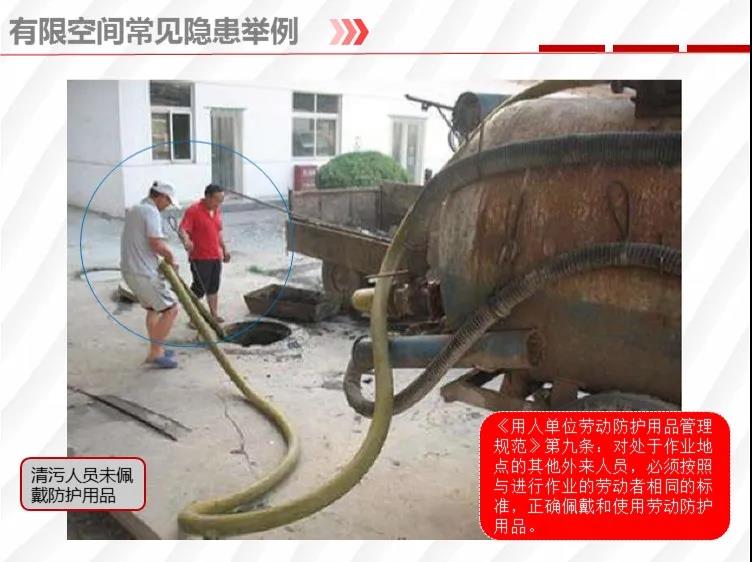 二要嚴(yán)格落實(shí)有限空間作業(yè)安全管理規(guī)定。各地各有關(guān)部門(mén)要督促企業(yè)嚴(yán)格執(zhí)行《安徽省有限空間作業(yè)安全管理與監(jiān)督暫行規(guī)定》,凡涉及到有限空間作業(yè),做到“五個(gè)必須”,即必須嚴(yán)格實(shí)行作業(yè)審批制度;必須做到“先通風(fēng)、再檢測(cè)、后作業(yè)”;必須配備個(gè)人防中毒窒息等防護(hù)裝備,設(shè)置安全警示標(biāo)識(shí);必須對(duì)作業(yè)人員進(jìn)行安全培訓(xùn);必須制定應(yīng)急措施,現(xiàn)場(chǎng)配備應(yīng)急裝備,嚴(yán)禁盲目施救。