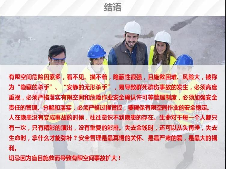 事故暴露出企業(yè)和從業(yè)人員對(duì)有限空間風(fēng)險(xiǎn)辨識(shí)不清、試生產(chǎn)過(guò)程中安全防范措施不到位、盲目施救導(dǎo)致傷亡擴(kuò)大等問(wèn)題,也暴露出監(jiān)督管理存在薄弱環(huán)節(jié)等問(wèn)題。省政府領(lǐng)導(dǎo)高度重視,王清憲省長(zhǎng)、鄧向陽(yáng)常務(wù)副省長(zhǎng)、張紅文副省長(zhǎng)先后作出批示,要求妥處善后,查清原因,嚴(yán)格追責(zé)。為深刻吸取事故教訓(xùn),堅(jiān)決遏制類(lèi)似事故再次發(fā)生,現(xiàn)提出以下工作要求,請(qǐng)結(jié)合本地區(qū)本部門(mén)實(shí)際認(rèn)真貫徹執(zhí)行。