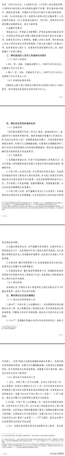 12月2日,合肥應急管理局在其官網(wǎng)發(fā)布廬陽區(qū)中鐵十局集團第三建設有限公司 “816”觸電事故調(diào)查報告。